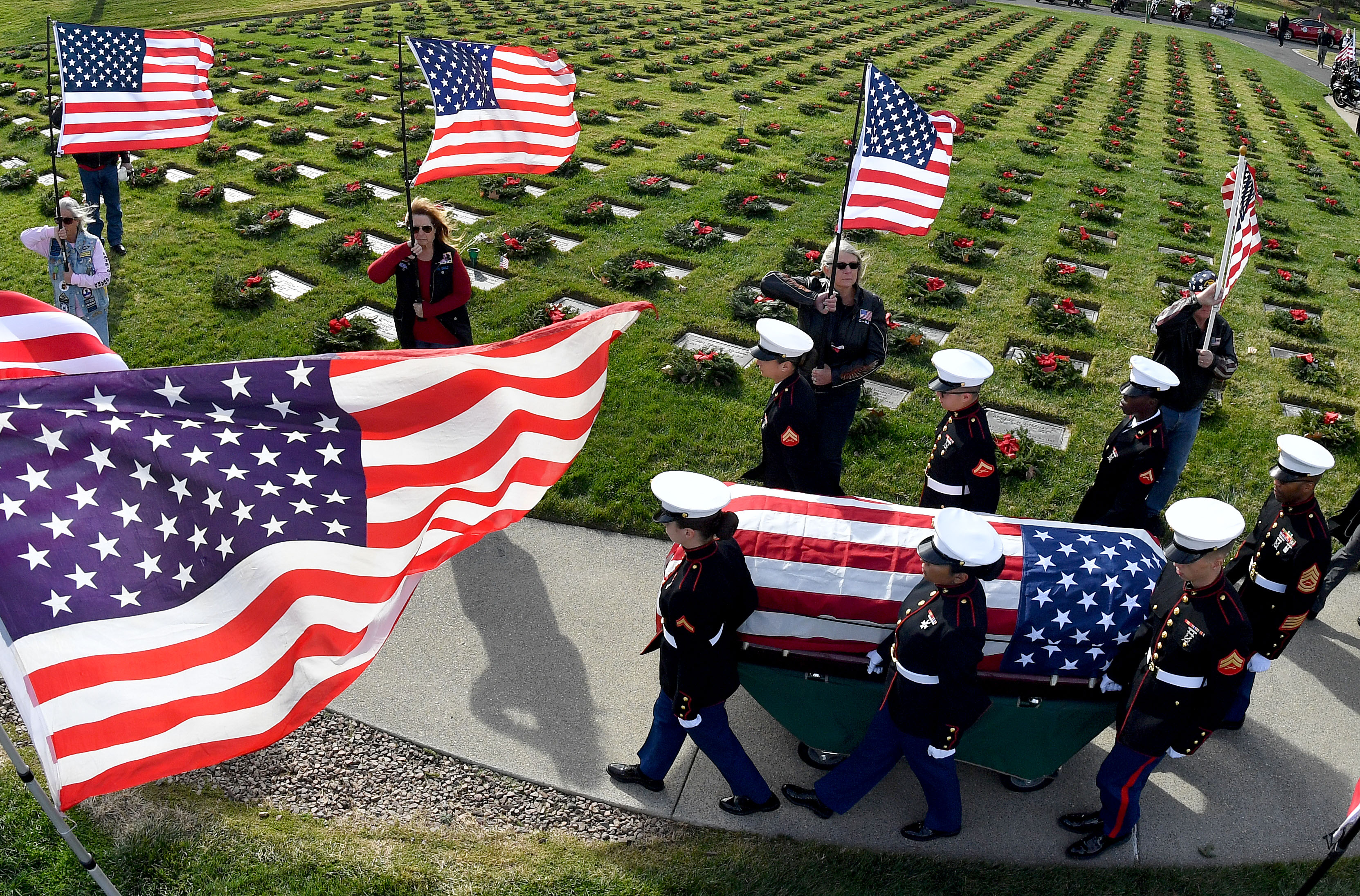 We started out quite a few years ago and now have three groups, Semper Fi #1, Semper Fi #2, and Semper Fi #3. In my opinion, there should be one in every community. We are sanctioned by the VA, and they even feed us lunch on our duty days. We are approved by the Marine Corp to wear our dress blue uniforms only at the Cemetery and special events. It must be to regular Marine Corp standards along with our grooming, and we have to buy and maintain our uniforms ourselves. We provide full military honors to all branches of the service, complete with flag folding, bugle playing Taps and /or bagpipes if requested, and three round volley rifle salute. We use M1 Garands that are maintained by our armory personnel. When I found out about this organization, I was set aback that our country doesn’t perform these tasks on their own. If we didn’t do this, the representing branch of service usually sends only two delegates to hand the family a flag, if even that. It is shameful!